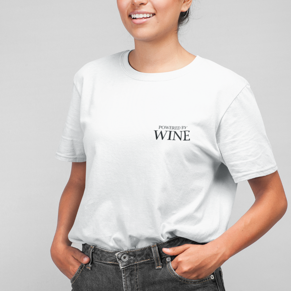Wenn du mal einen Durchhänger hast, bringt Wein dich wieder voll in Fahrt? Wein gibt dir Power? Dann bist du definitiv "Powered by wine" und kannst das mit diesem Shirt ausdrücken! Dieses elegante Statementshirt darf in deinem Kleiderschrank nicht mehr fehlen.